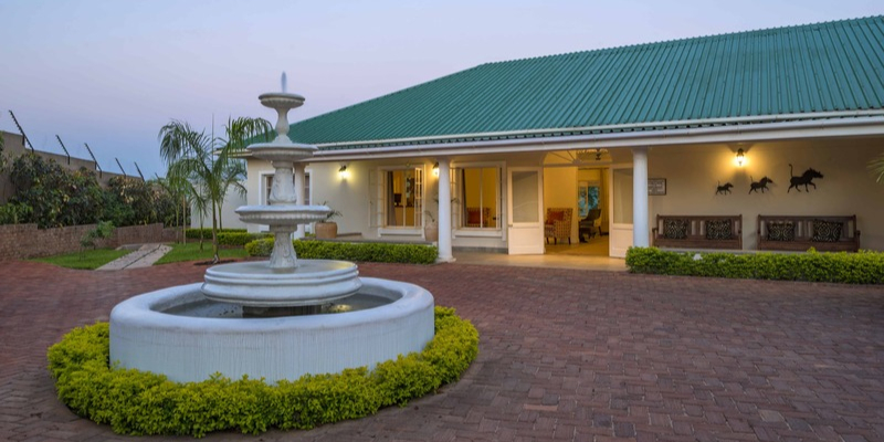 The lodge’s expansive garden and swimming pool provide a relaxing retreat after a day of adventure. The central area includes a cozy lounge, dining space, a large veranda, and a small curio shop featuring local art and souvenirs. For added relaxation, the Ukuthula Day Spa offers massages and beauty treatments.